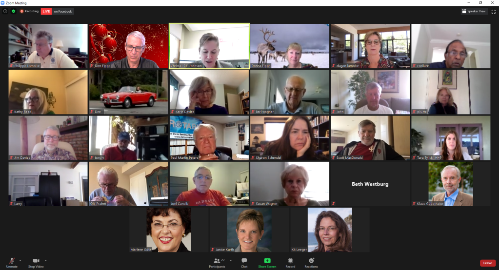 December 3, 2020 – The meeting had guest speaker Christa “CJ” Johnson the Del Mar City Manager. She discussed how severely the city was impacted by the COVID-19 Pandemic. We had 27 members and quests attend the meeting.