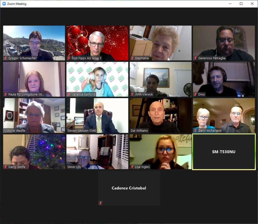 December 8. 2020 – The meeting started with a remembrance of Jack Dausman who died last week. It was my duty and pleasure to introduce District Governor Steve Weitzen. I got to play around with Steve’s canned introduction. It is one of the duties of the AG.