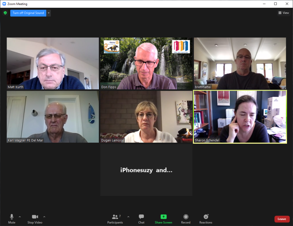 April 12, 2021 – I am meeting with the Monday Leadership Group of the Rotary Club of Del Mar to help them with decisions that need to be made for resuming meeting in person with meal.