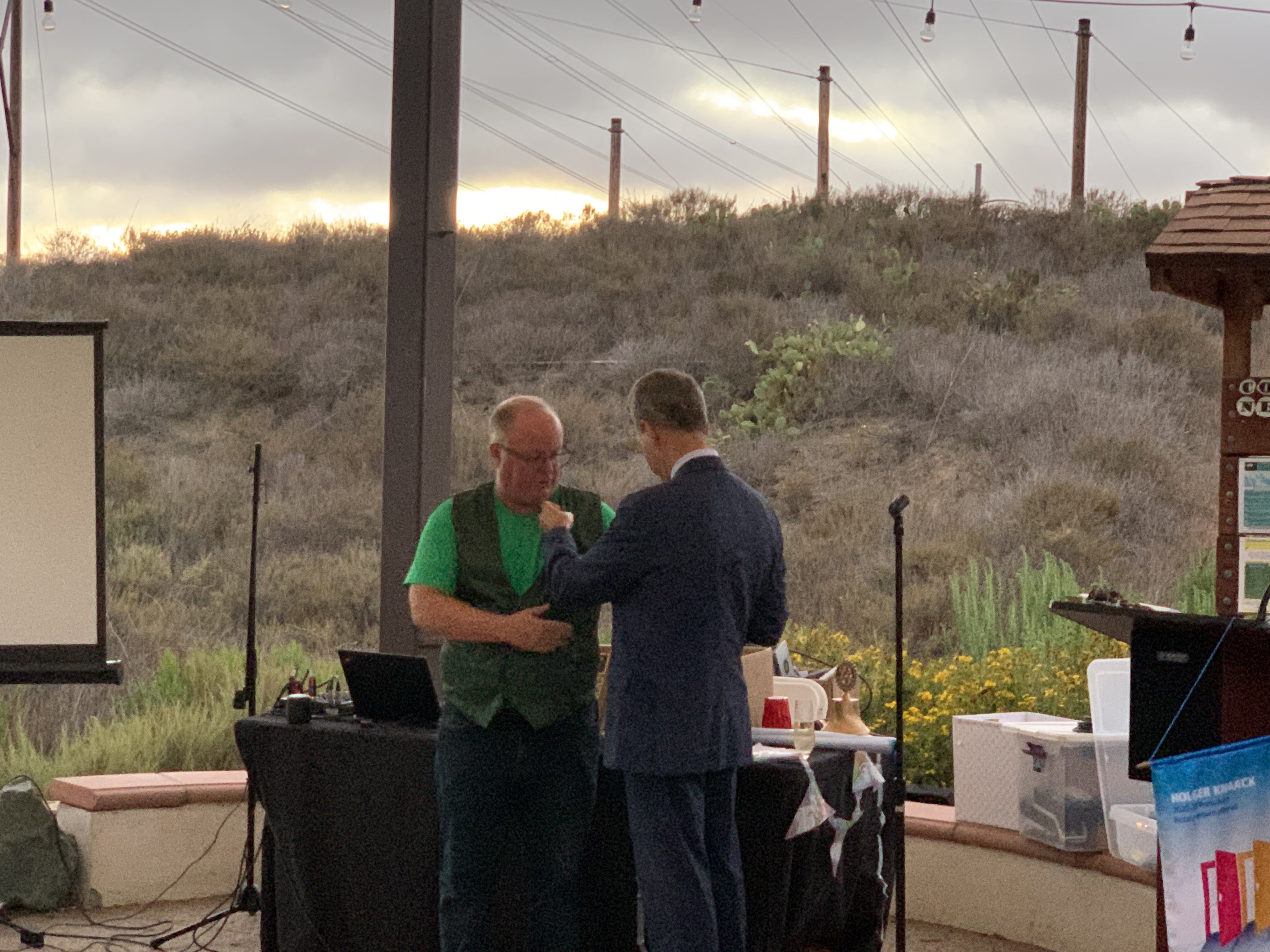 June 24, 2021 – I attended the ceremony at the Agua Hedionda Discovery Center in Carlsbad to demote Ava Payne and promote Bill Walsh to the presidency of the Rotary Club of Carlsbad.