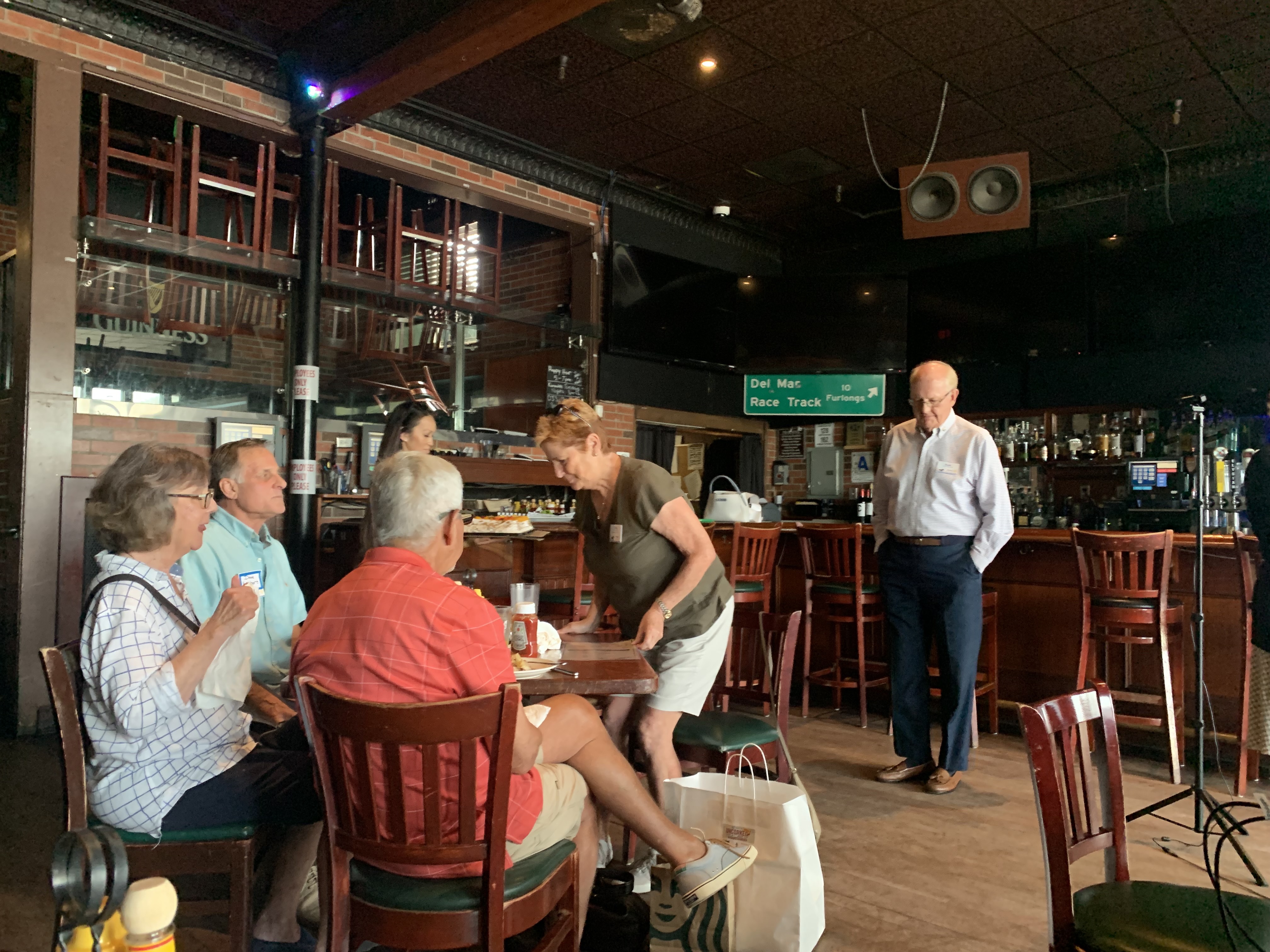 July 8, 2021 – The Rotary Cub of Del Mar at the Jimmy ‘Os in Del Mar. This was the first meeting for Karl and Suzy Wagner as co-president. Karl, Suzy and the 2021-22 Board of Directors were sworn in. Karl and Suzy also provided a cake in celebration of their 25 wedding anniversary.