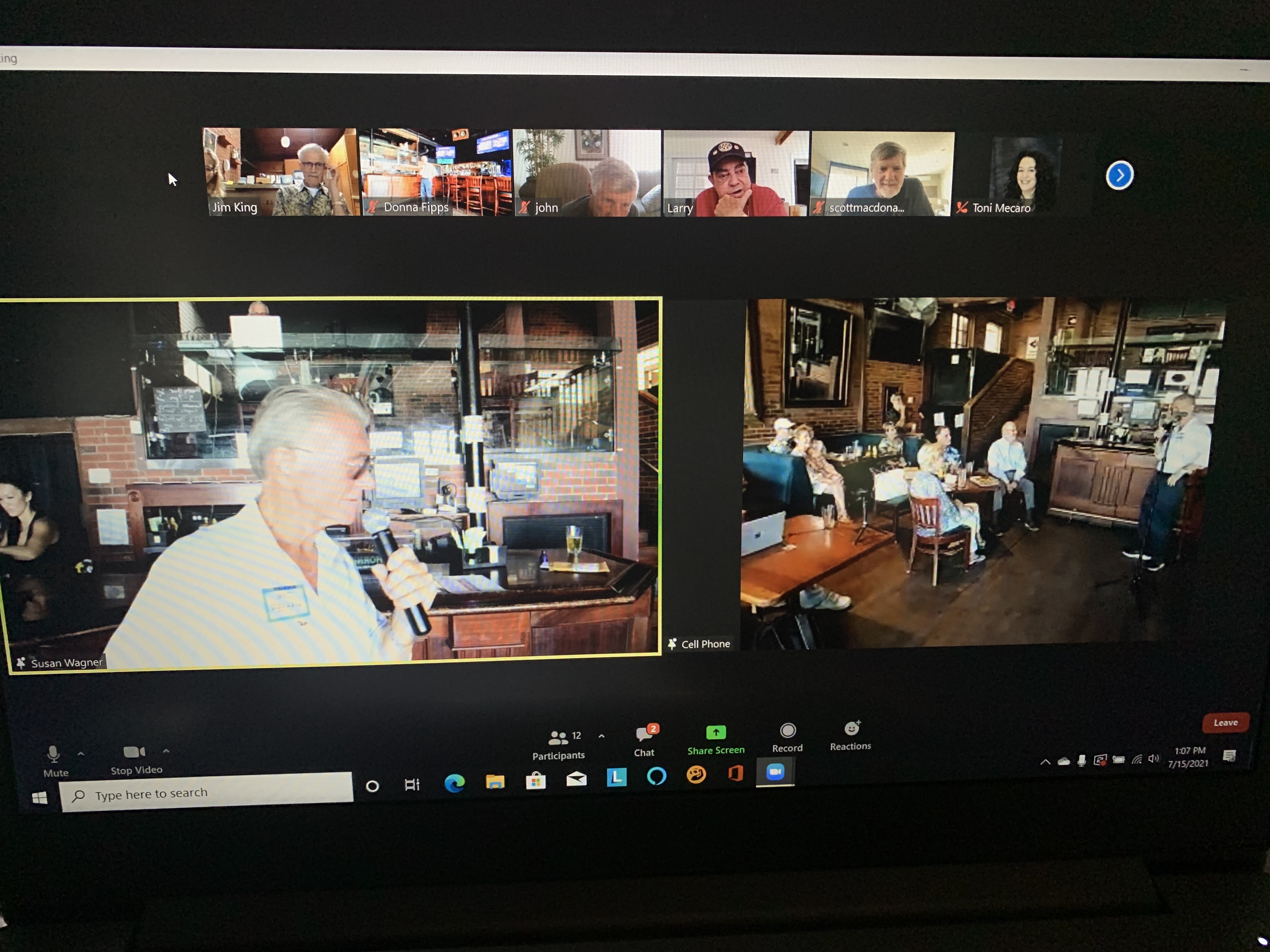 July 15, 2021 – The meeting was held at Jimmy O’s in Del Mar. Klaus Gubernator and I produced the weekly hybrid meeting using the in house TV screens and speaker system. Philippe Lamoise provided technical assistance and the roaming hand held camera.