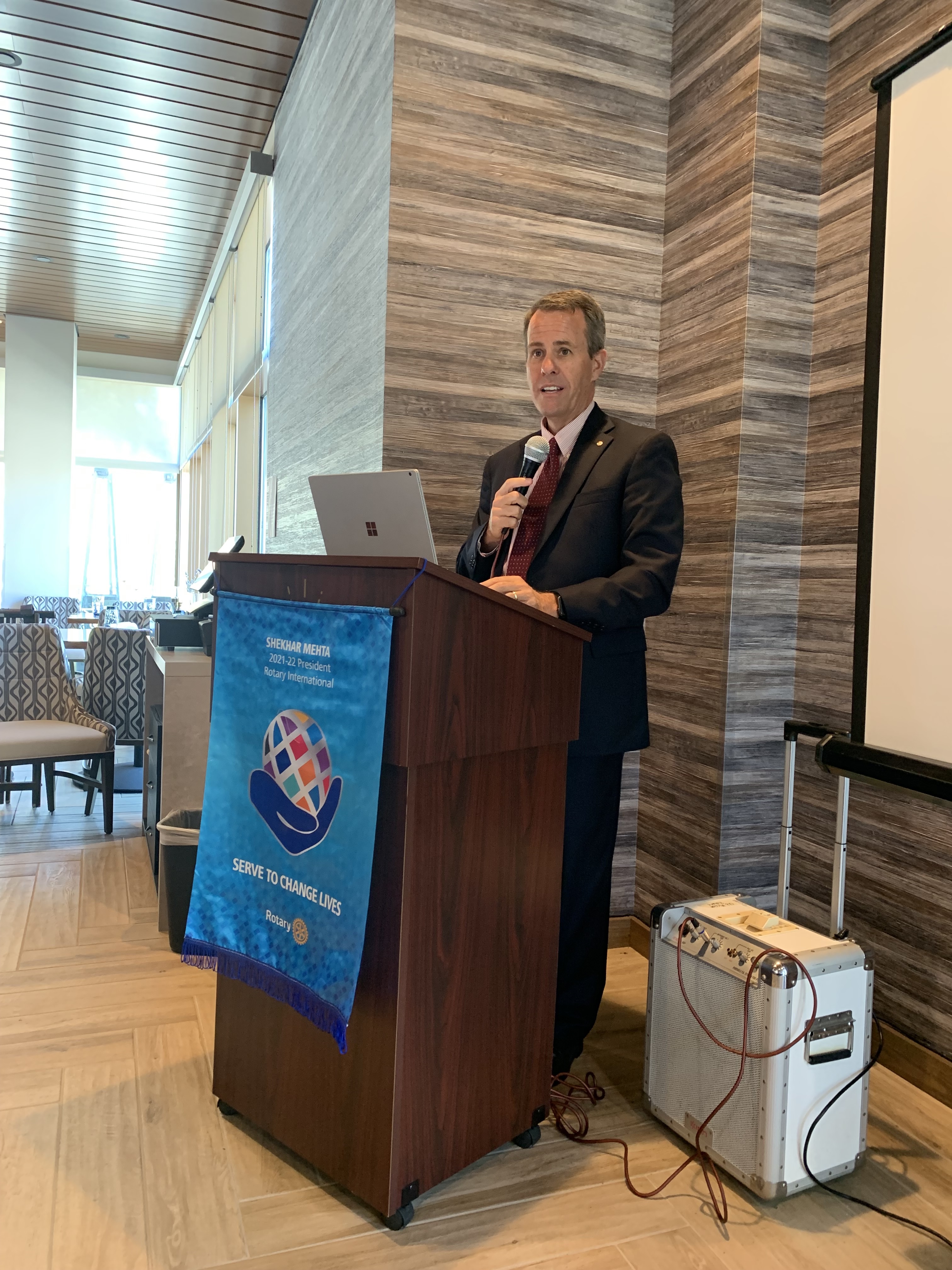 July 20, 2021 – District Governor Dan Gensler visited the Old Mission Rotary Club at the Legacy Hotel Resort and Spa on Hotel Circle. District Governor Elect Chuck Pretto also attend the meeting.