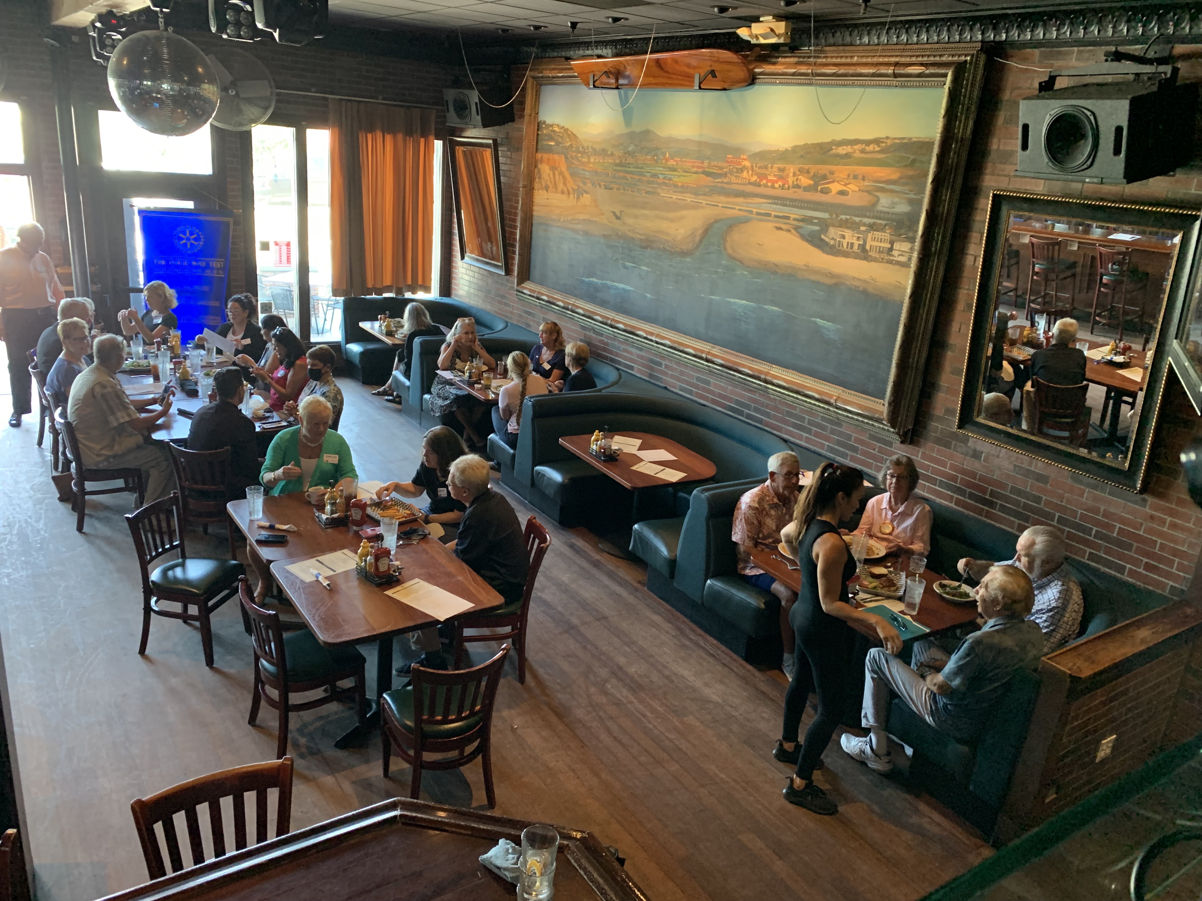September 16, 2021 – The club is still meeting at Jimmy O’s in Del Mar. I hosted the hybrid meeting on Zoom with 4 member attending virtually and 25 in person. I had the cheese burger with bacon for lunch.