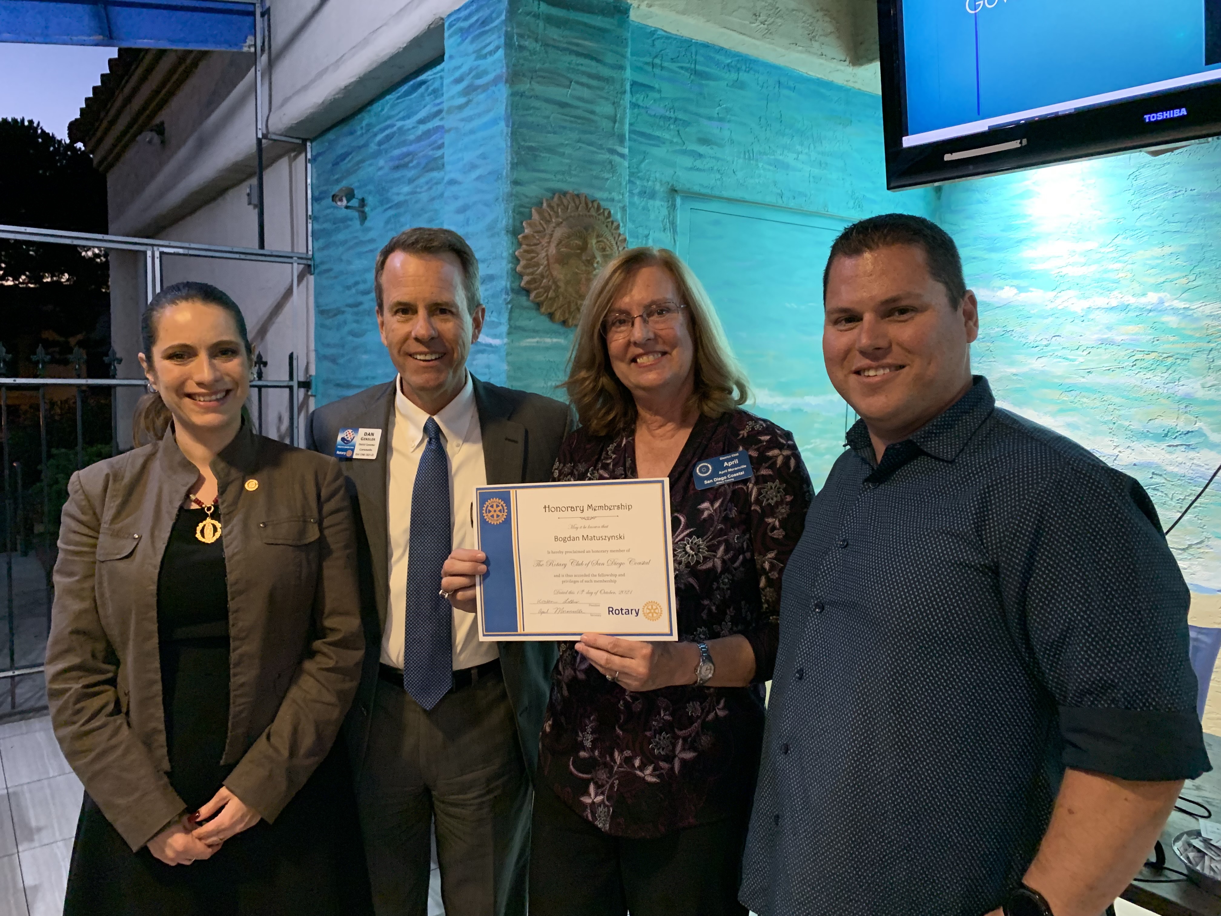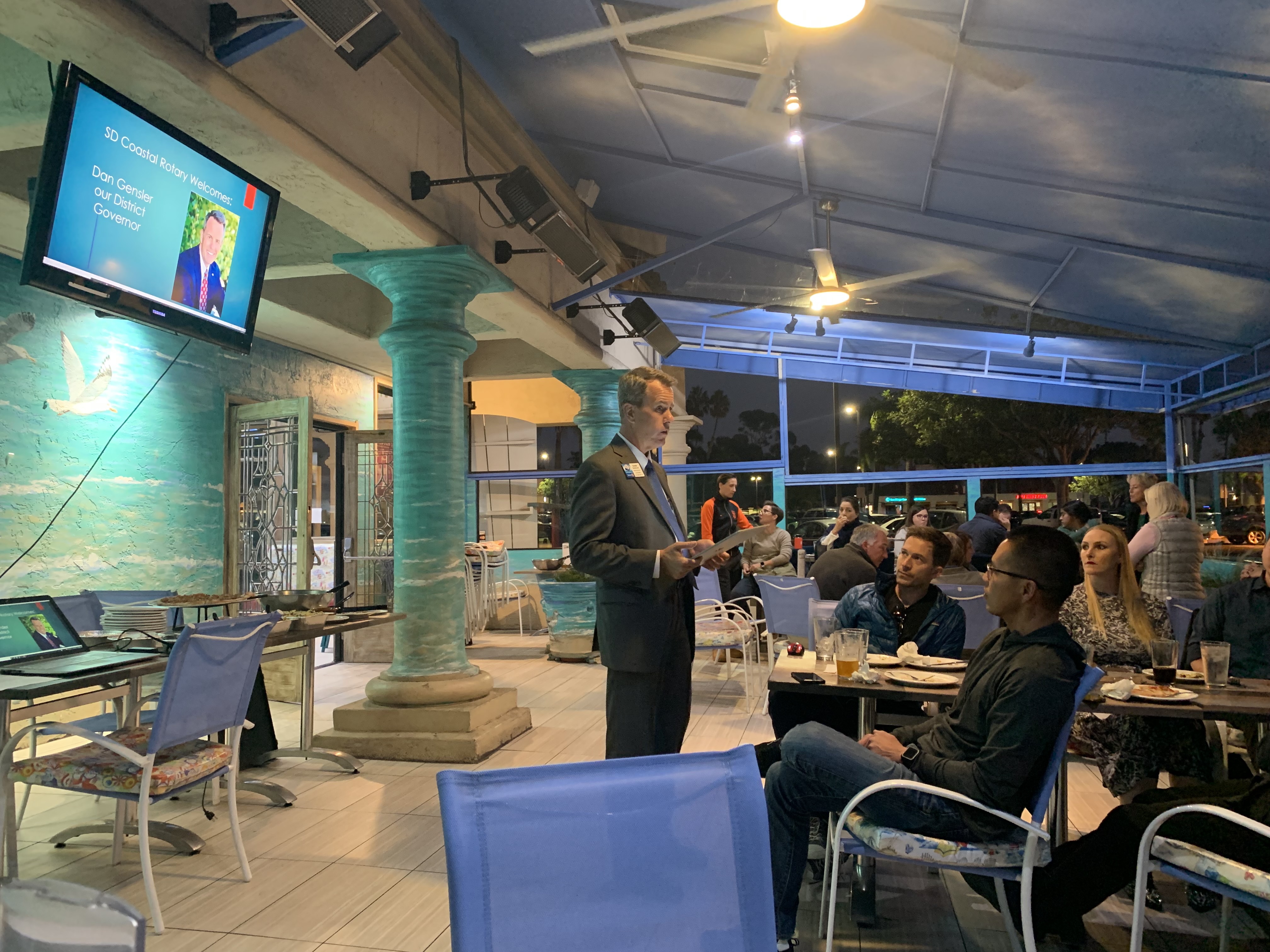 October 13, 2021 – I attended the dinner meeting of the Rotary Club of San Diego Coastal at Leucadia Pizza, University Town Center for District Governor Dan Gensler’s official visit to the club. I had pizza, salad and beer for dinner. This was the 29th visit to District clubs.