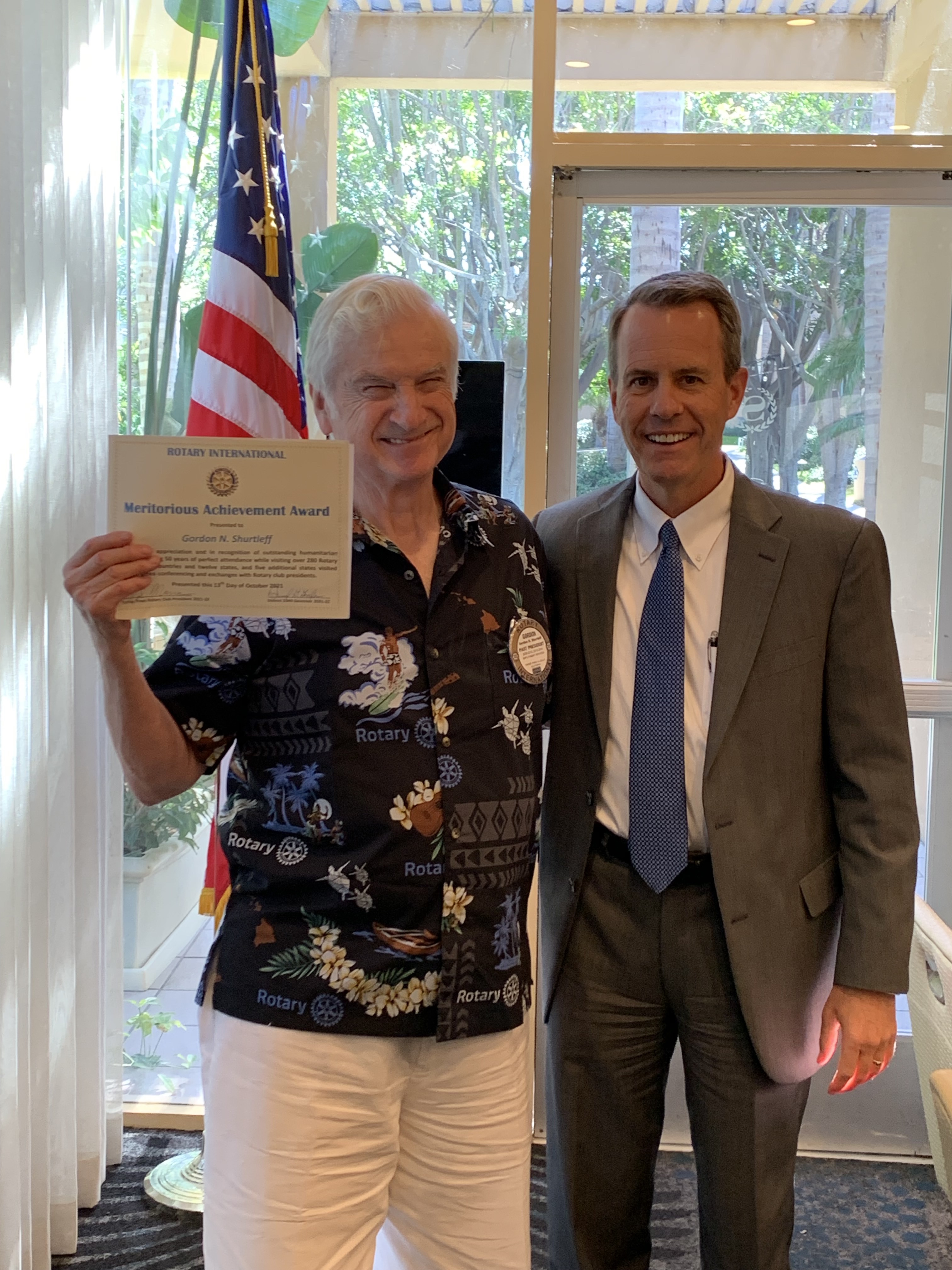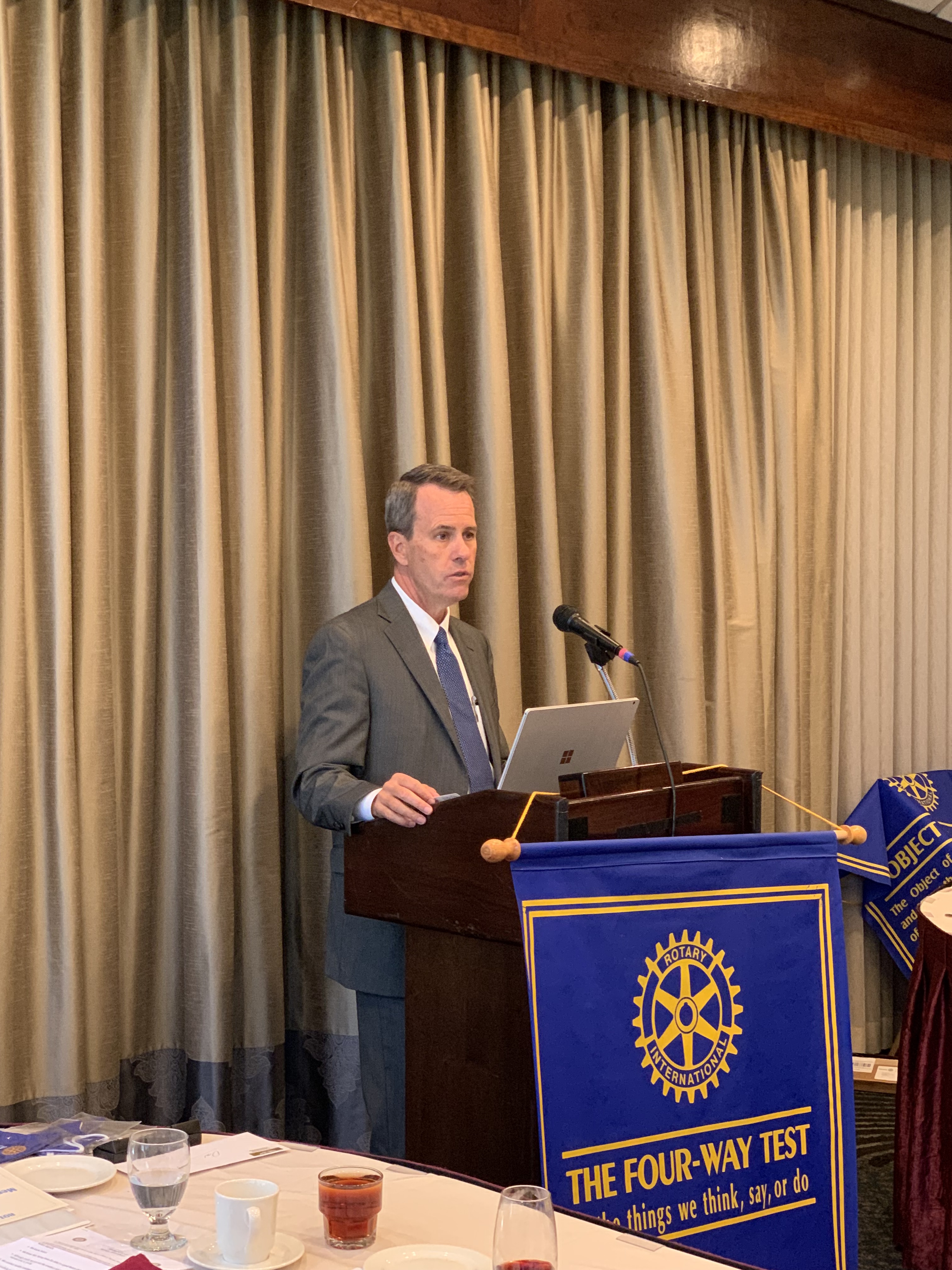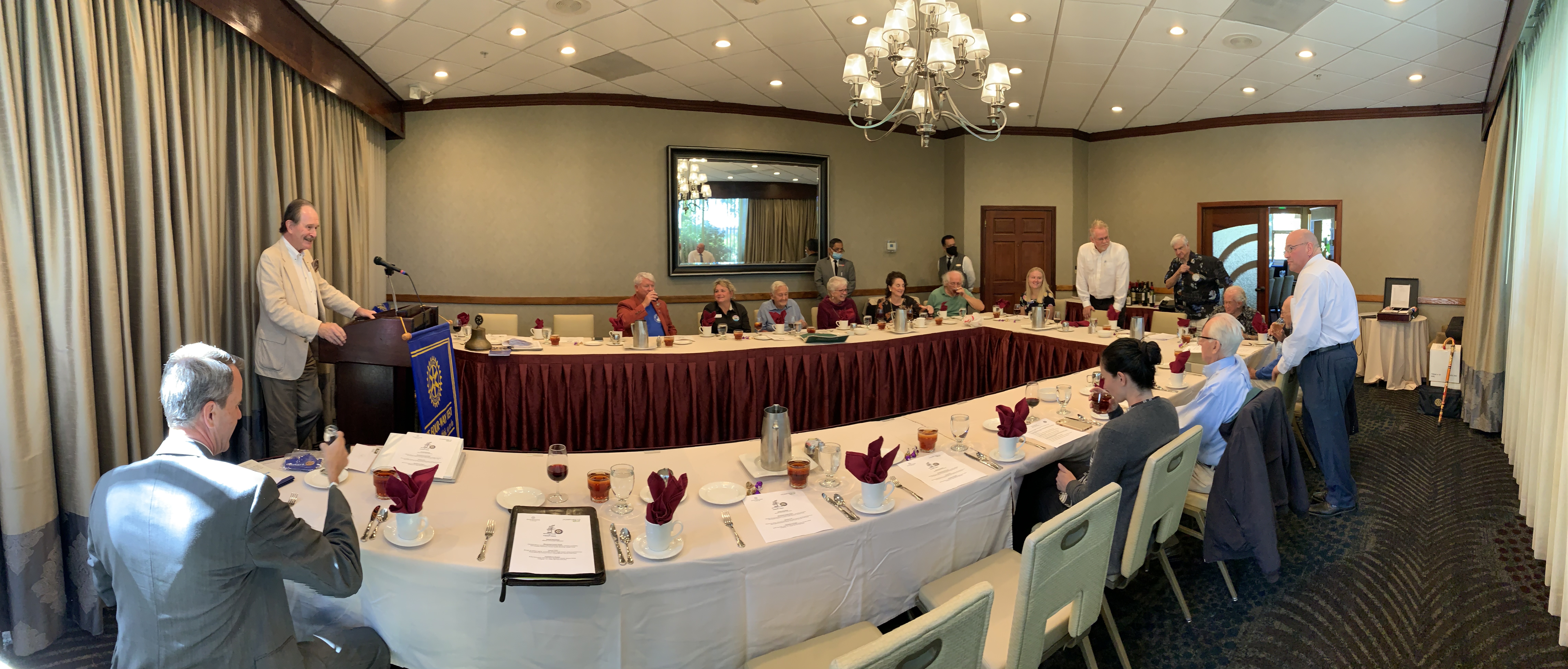 October 13, 2021 – I joined District Governor Dan Gensler for his 28th club visit to the Rotary Club of Torrey Pines at the Sheraton Ja Jolla for lunch. Lunch today was a club sandwich. Torrey Pines is a wine club and had several bottles of wine to choose from to have with lunch.
