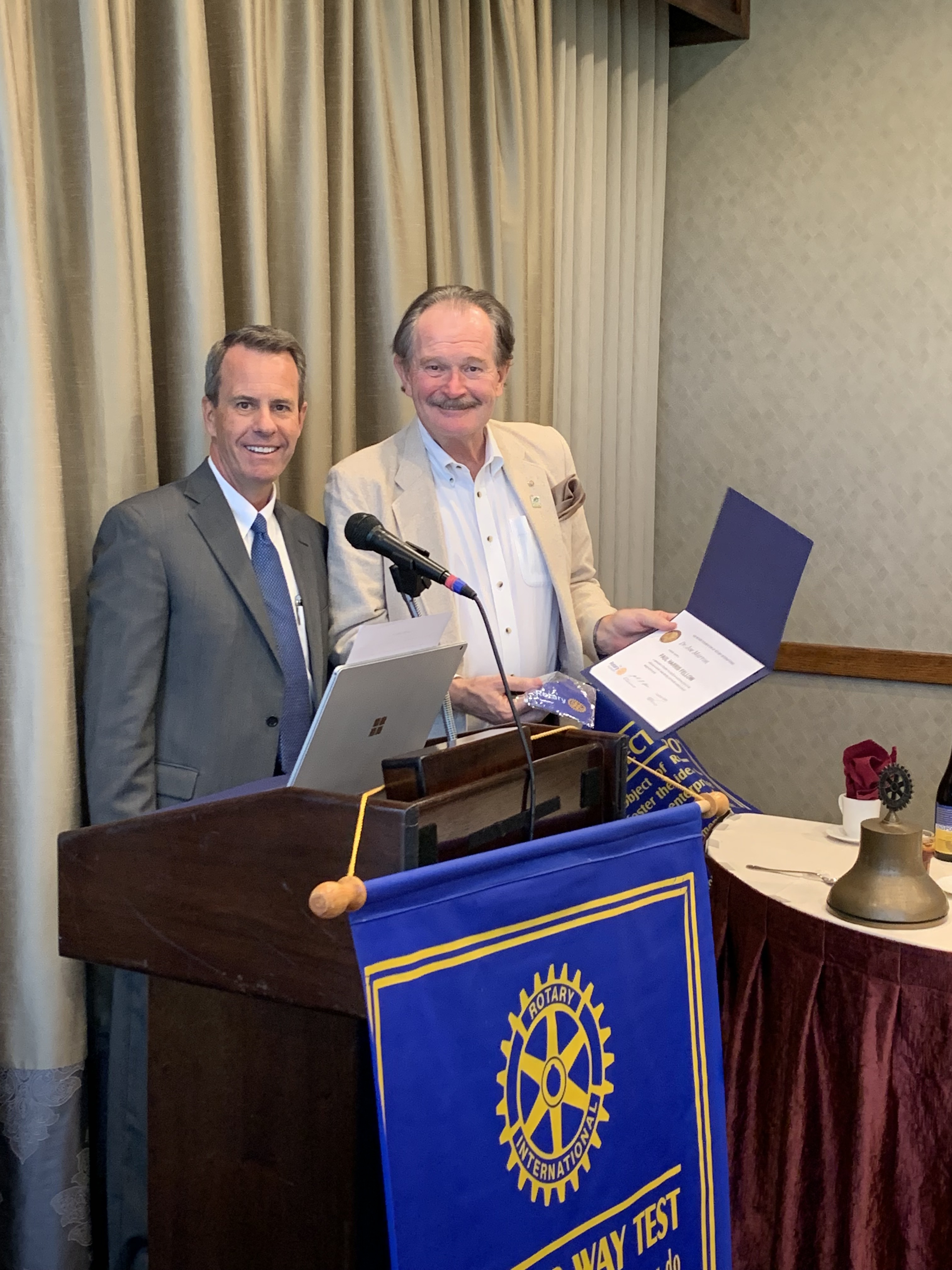 DG Dan presented Club President Joe Prior his first Paul Harris Fellow recognition.