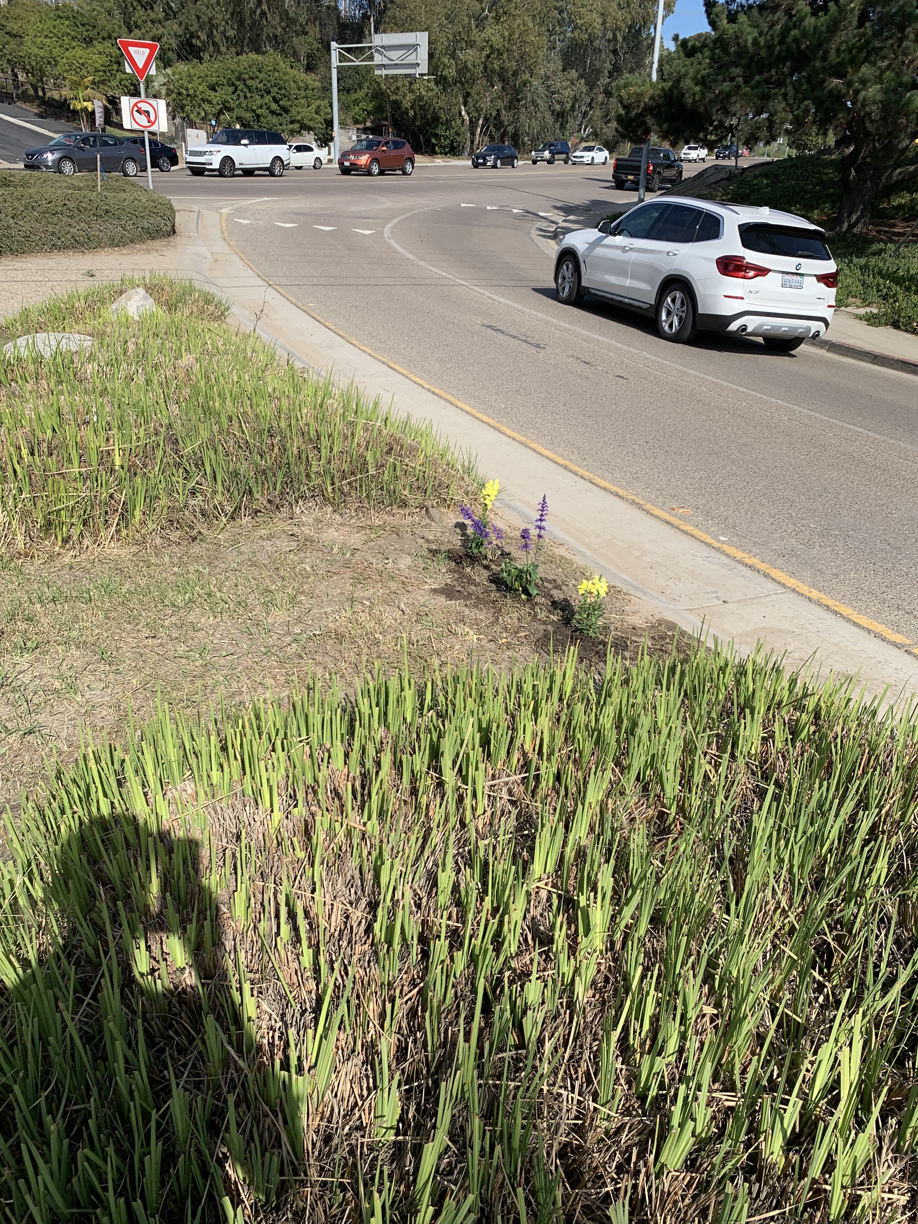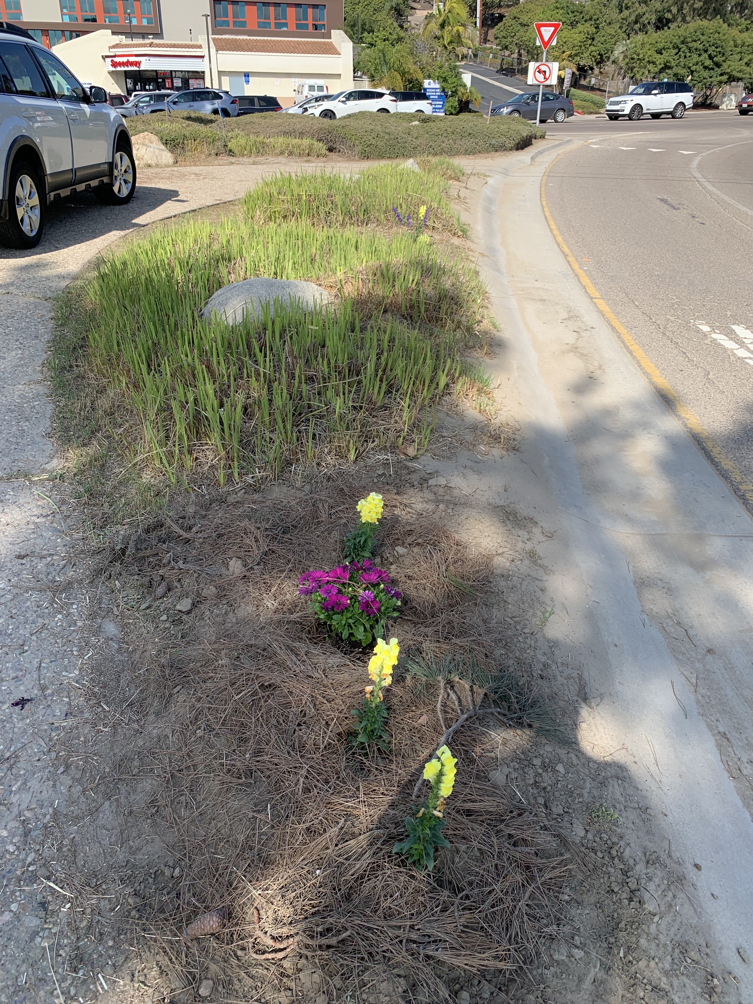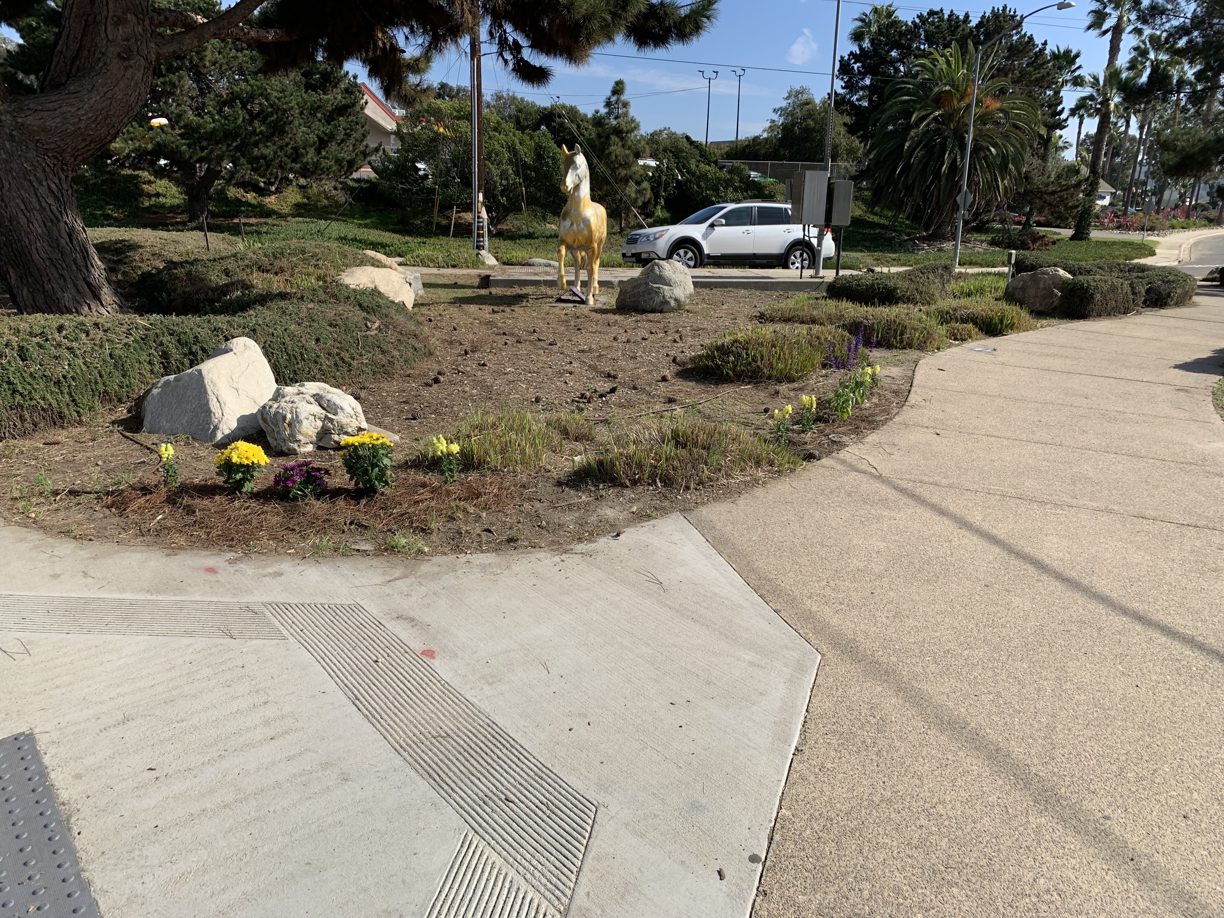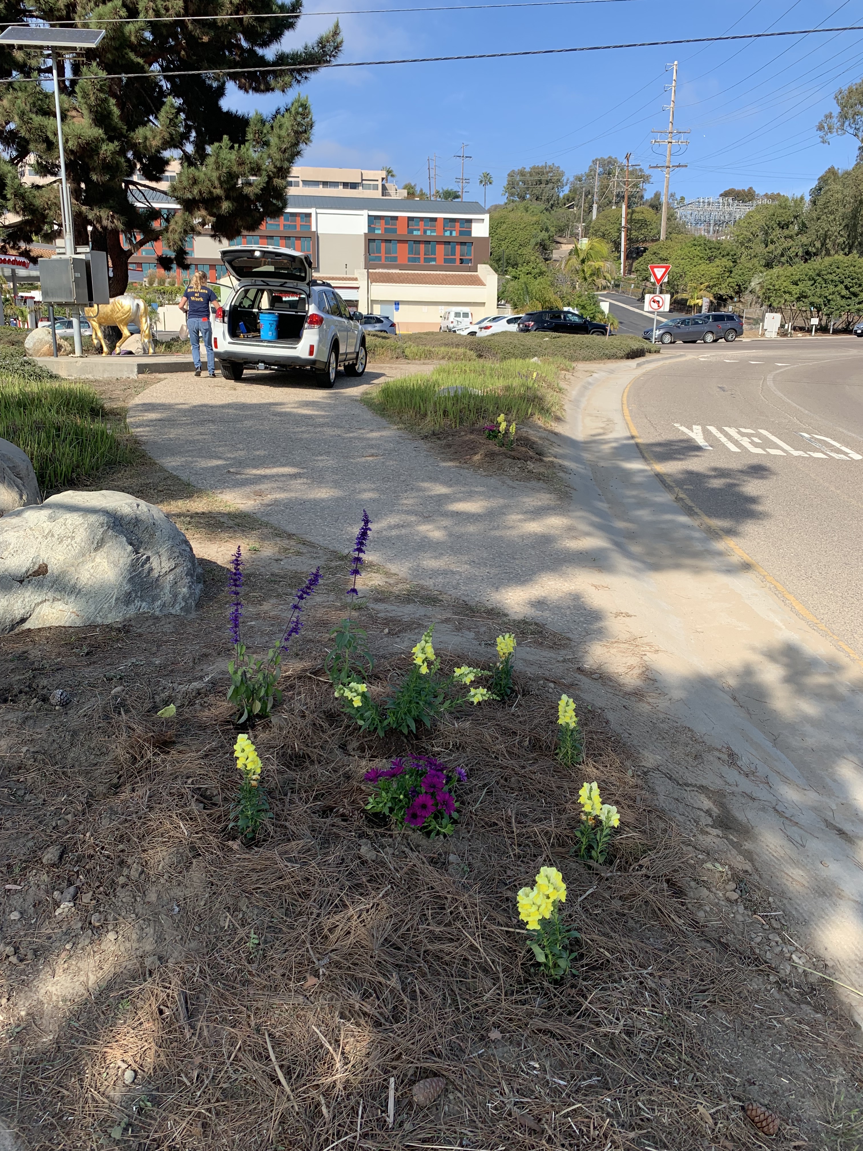October 30, 2021 – The Rotary Club of Del Mar with me, Donna and Co-Presidents Karl and Suzy Wagner added a splash of color to the “pork chop” a triangular piece of land between the Del Mar Hilton and the Race Track.