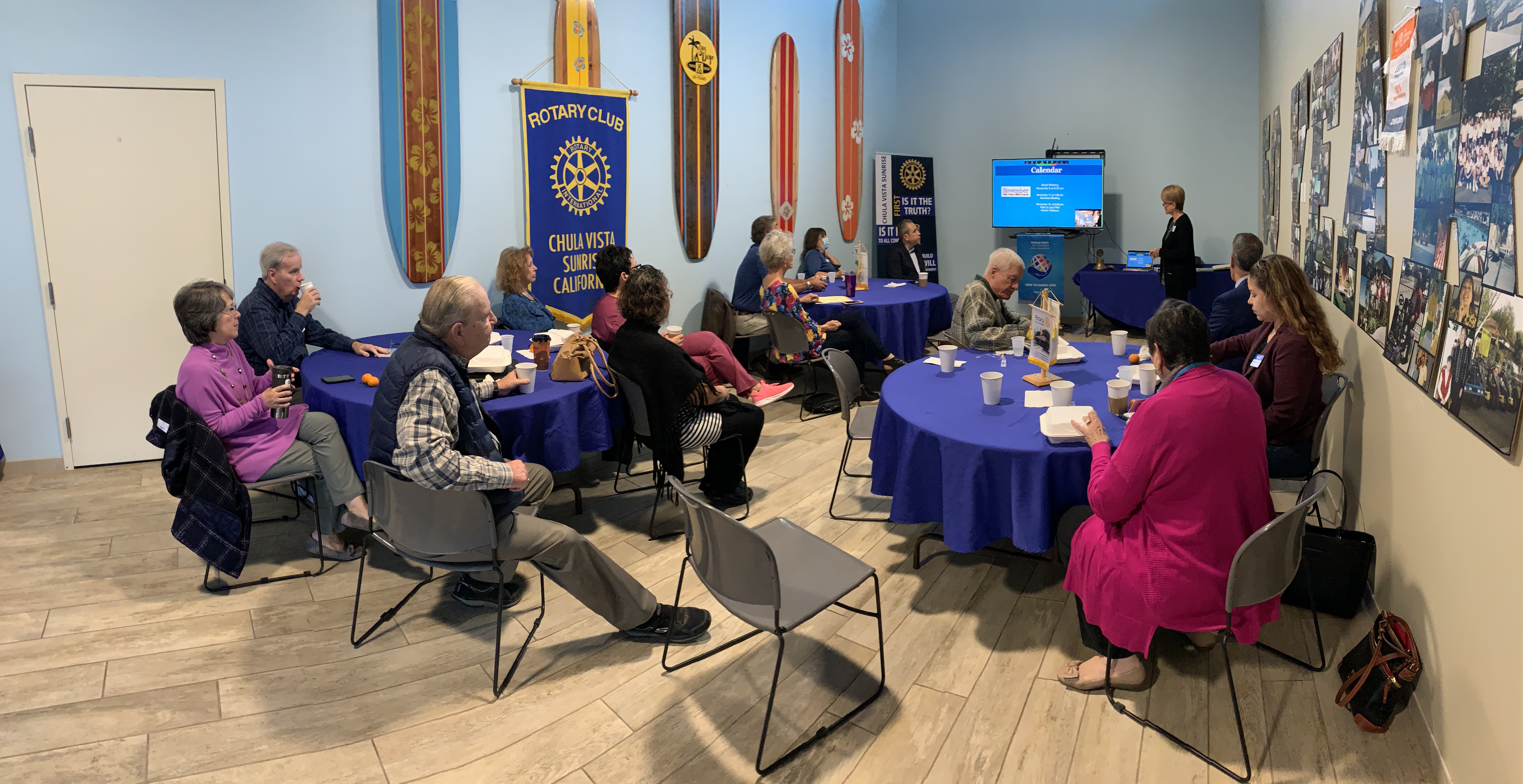 November 4, 2021 – District Governor Dan Gensler made his official visit to the Rotary Club of Chula Vista Sunrise at the “Board” Room at KOA Resort San Diego. Breakfast was provide by the facility in to go boxes. This is the home club of PDG Marta Knight. DG Dan brought one of his club members Rob Vernetti to join him for breakfast.