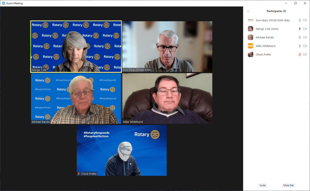 District Foundation Committee met by Zoom at 1 PM. As the District Governor Nominee, I am a non-voting guest of the committee to learn of it’s operations.