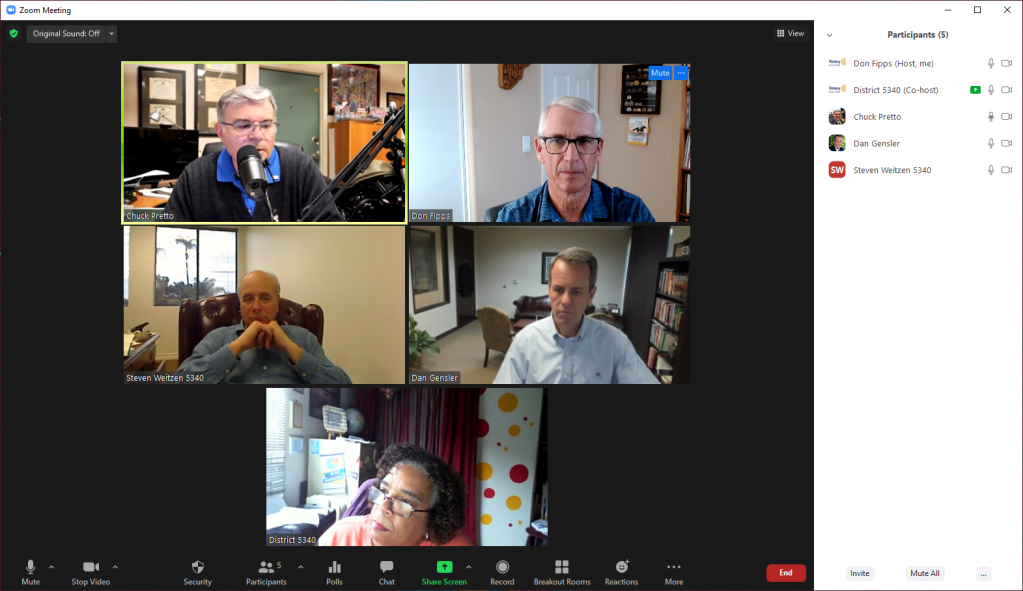 D5340 Governor Line Meeting at 4 pm via Zoom.