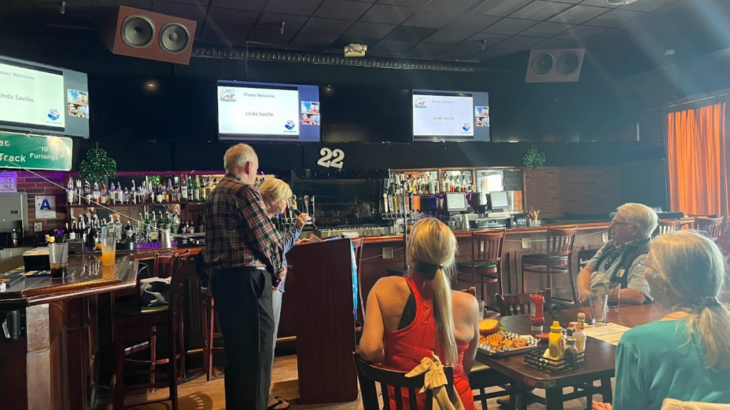 March 24, 2022 – We met at Jimmy O’s in Del Mar. The Community Service Committee met at 11:15. I had to have the Zoom Meeting set up by then. This time I brought my laptop downstairs to run the Zoom Meeting while the 2nd laptop upstairs connected the video input, wireless microphones connected to the sound board and then to the house speaker system. This worked much better as I could be part of the meeting. The regular meeting began at 12:30. We had PDG Steve Weitzen present to give the club it’s End Polio Now certificate.