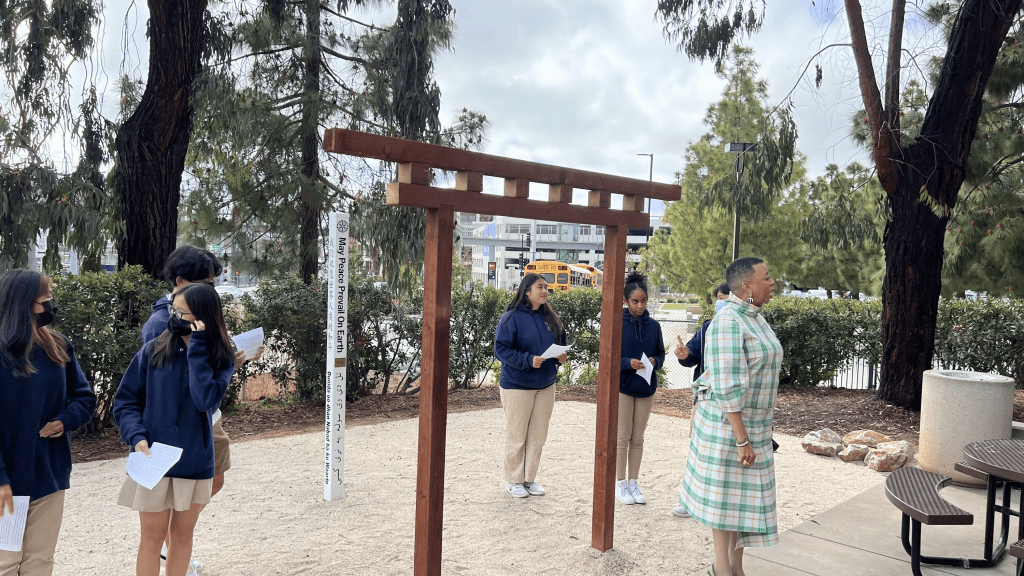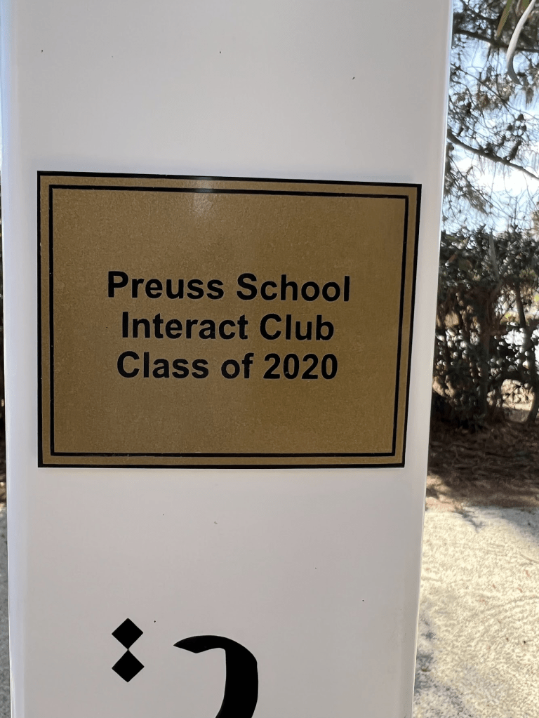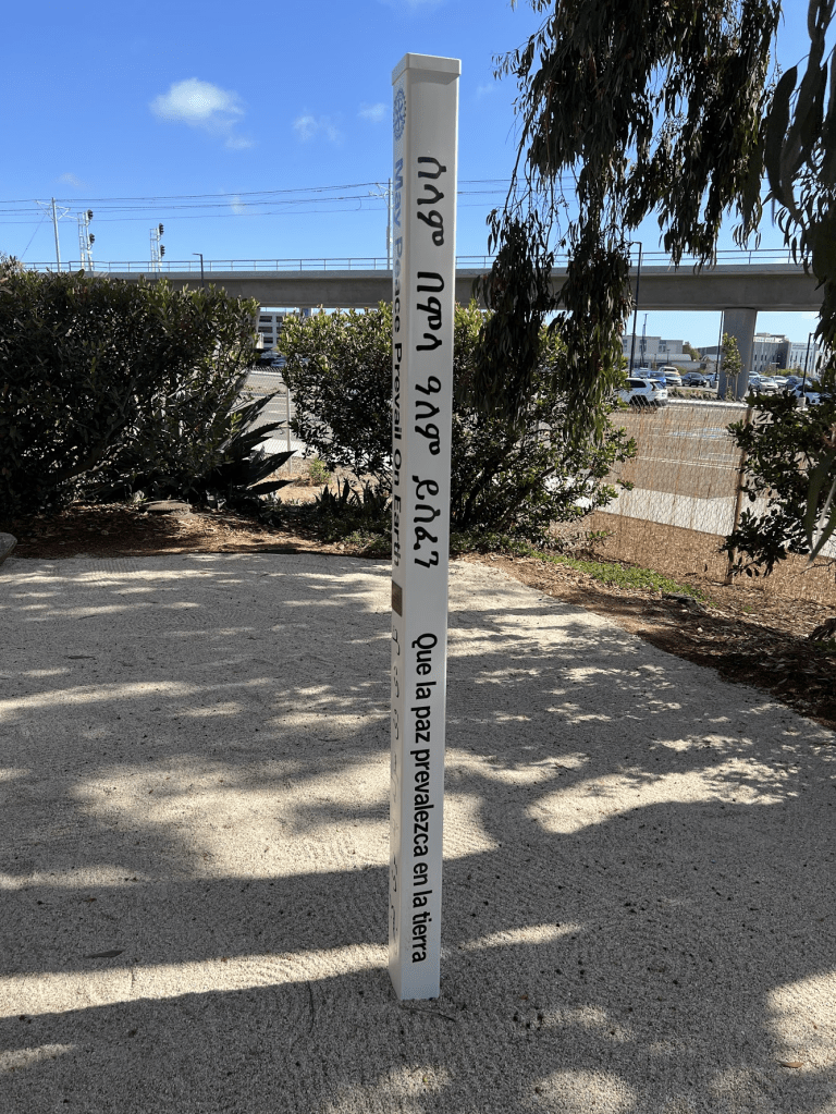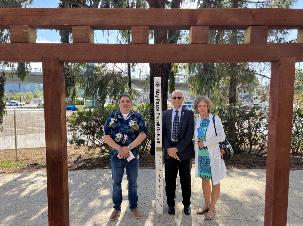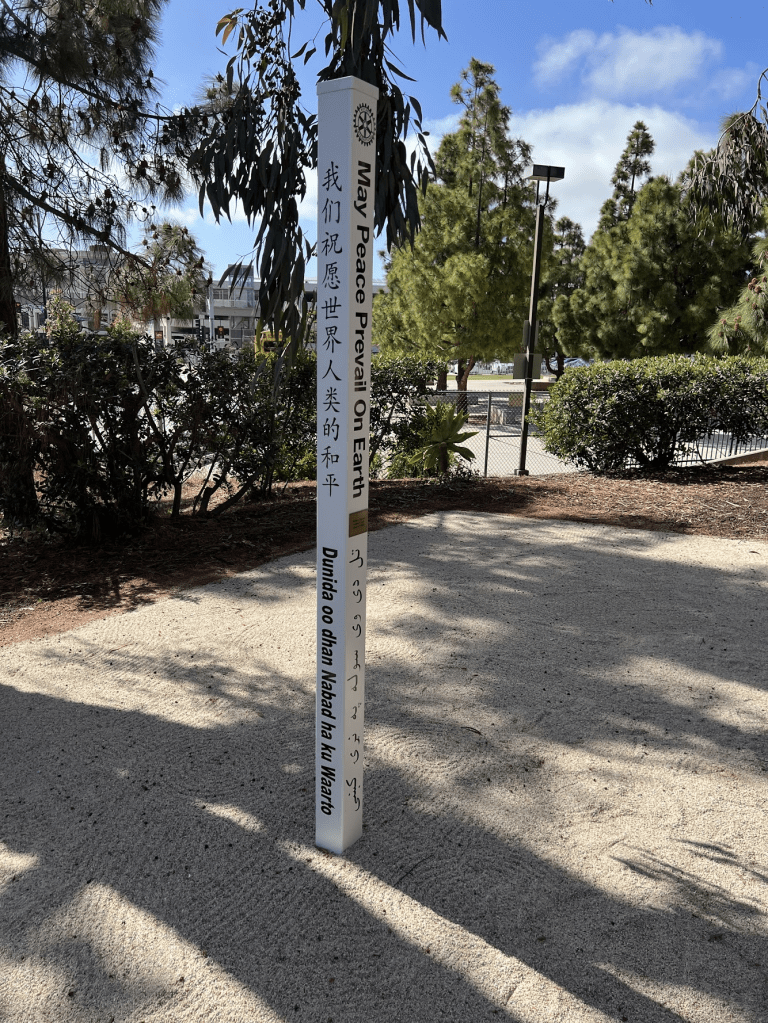 April 21, 2022 – I participated in the dedication of a Peace Pole at the Preuss School University of California San Diego. The school’s Interact Club sponsored by the Rotary Club of La Jolla Golden Triangle installed the pole. The school’s Garden Club created the Zen garden where the pole was installed. The Peace Pole can be found at http://www.worldpeace.org along with other Peace Poles around the world.