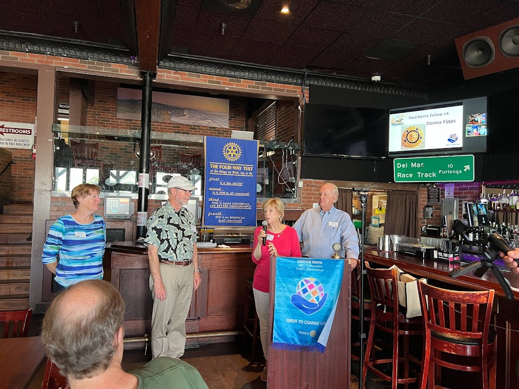 Donna was recognized for her contributions to The Rotary Foundation with her Paul Harris Fellow plus 4. Jim Davies was recognized for his first Paul Harris Fellow.