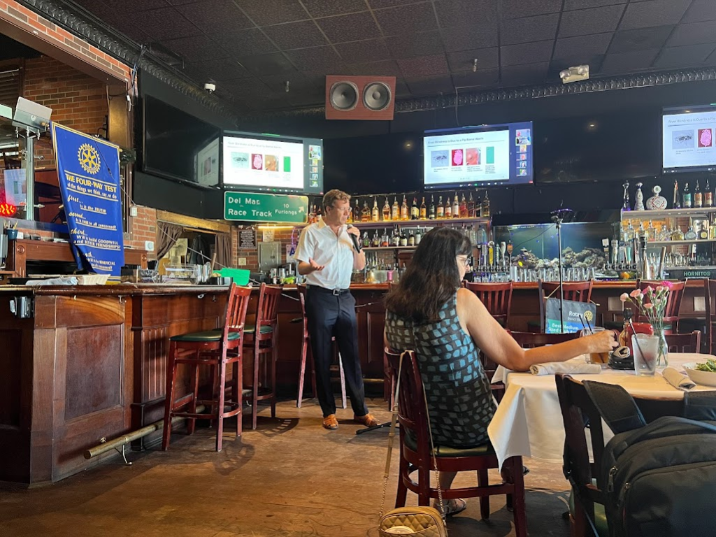July 21, 2022 – Meeting at Jimmy O’s under new management with Jenna as General Manager. This now includes tablecloths and flowers. The pricing has gone up. We ran a hybrid meeting. The sound could have been better balanced between Zoom and the in house speaker system. We had only 3 parties join us via Zoom. I had the spicy shrimp roll for lunch, good but pricey for the size of the sandwich.