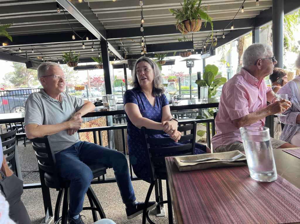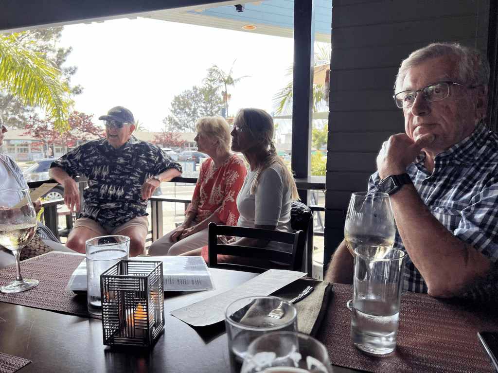 July 26, 2022 – RCDM had a club social hosted by Karl and Suzy Wagner at Cevasco’s in Del Mar. It is a relatively new eatery. Donna and I shared a pizza, bruschetta and French fries. I had a couple of beers as the Happy Hour prices include $3 beers!