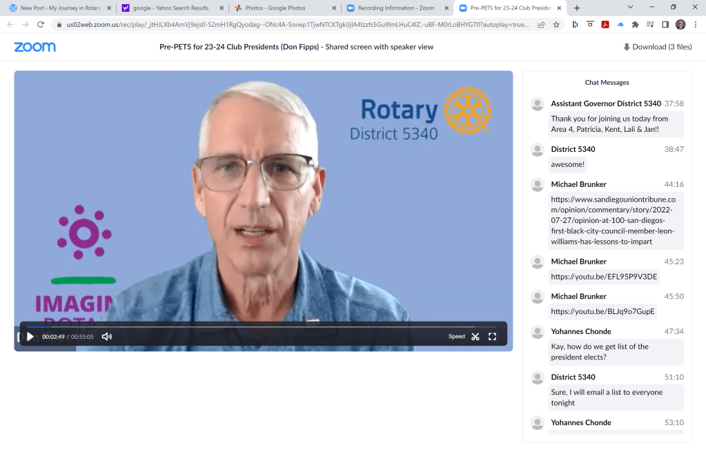 August 1, 2022 – We conducted our first meeting for 2022-23 Presidents Elect via Zoom at 6 pm. We had a number of Presidents Elect and Assistant Governors present. We had the AGs present introduce their Presidents to review a fun fact about their club. We reviewed the upcoming calendar items.