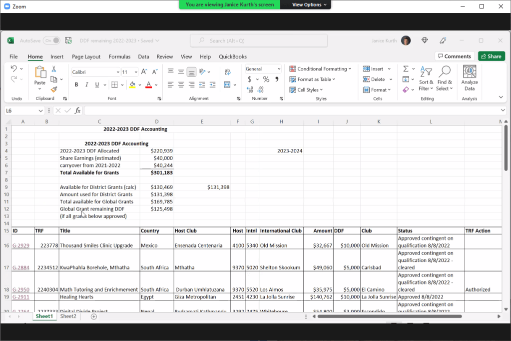 September 12, 2022 – Via Zoom at 1 pm, I joined the District Foundation Committee.