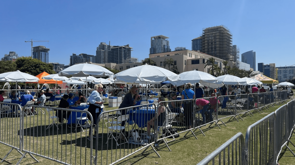 September 17, 2022 – We attended the Canine Companions DogFest fundraiser at Waterfront Park that started at 11 am. The Rotary Club of Del Mar was a sponsor ($1,000) and gave the booth to District 5340 to promote membership. District Governor Chuck Pretto attended. We had QR codes, a sign-up list and a trifold pamphlets. We saw about 30 people at our table. Event organizers used a passport to get attendees to visit the booths to entry a drawing for free gifts. When a person came to our booth for a stamp in their passport, I quickly asked, what do you know about Rotary? This worked well to get people talking.