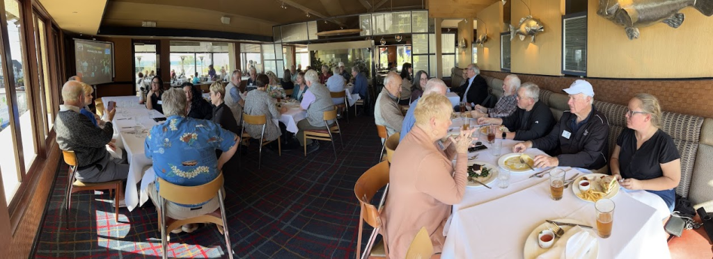 January 26, 2023 – At 1200 noon at Pacifica Del Mar. The meeting hosted by President Sharon Schendel. We preordered lunch for $20 but I added on an IPA beer. See photo foreground.