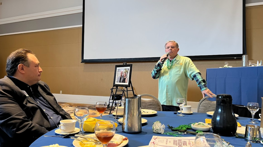 March 14, 2023 – The meeting was at the California Center for the Arts, Escondido at 12 for lunch. I visited to witness DG Chuck Pretto official visit to the club. Also joining was DGND Luis Carrenza and Ron Kohl. Everyone was in green in honor of St. Patrick’s Day and corned beef and cabbage was on the menu for lunch. The club created a song in honor of DG Chuck Pretto to the music of Old Danny Boy. It was well done.