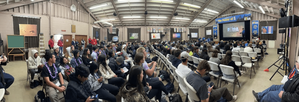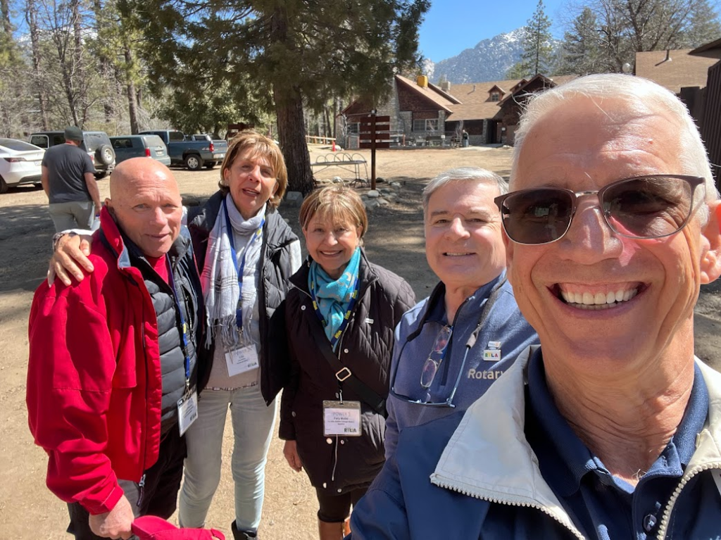 April 15, 2023 – At Idyllwild Pines Camp, we visited the Rotary Youth Leadership Awards Camp conduct by District 5340 Youth Services. We were just visiting on Saturday; the camp ran from Friday March 31 to April 2. District Governor Check Pretto, District Governor Nominee Dianne Crawford and District Governor Nominee Designee Luis Carrazana drove up with me in our Kia EV6, nervous about if the car could make the round-trip visit, it did, with 86 miles to spare.