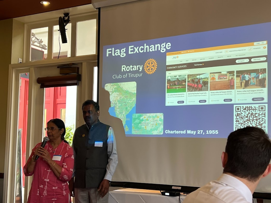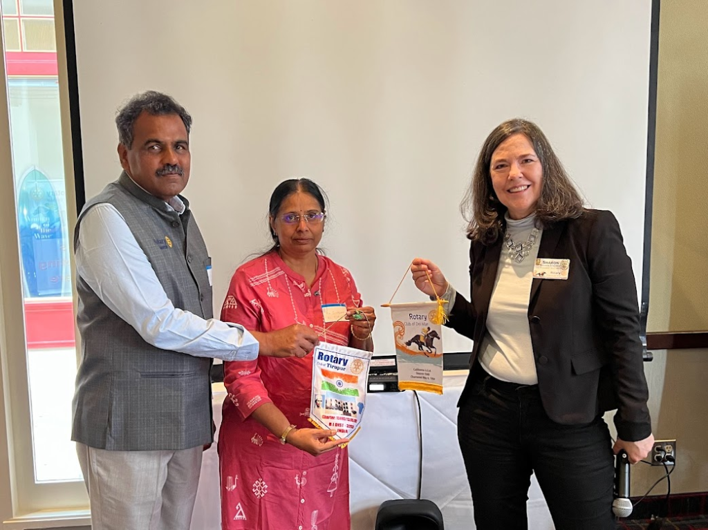 April 13, 2023- The club met at Pacifica at 12 noon. I had lunch with 2 visiting Rotarians from District 3202 and the Rotary Club of Tirupur, Dr. Sivagami & Dr. Sivasamy. We did a club flag exchange.